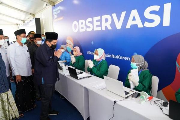 Menteri BUMN, Erick Thohir saat meninjau pelaksanaan vaksinasi di Pondok Pesantren KHAS Kempek Cirebon, Jawa Barat, Minggu (29/8). (Foto: Ist)
