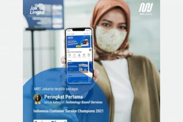 Jakarta. Jurnas.com - PT MRT Jakarta (Perseroda) meraih penghargaan pelayanan transportasi publik berbasis teknologi di ajang Indonesia Customer Service Champion Across 2021. Penghargaan diraih sebagai peringkat pertama untuk kategori Technology Based-Services dalam kompetisi yang diselenggarakan oleh Majalah SWA dan Bussines Digest tersebut.