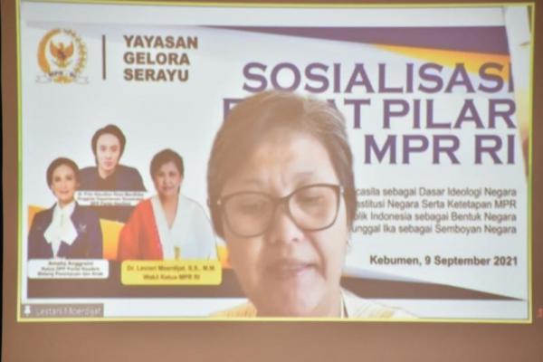 Wakil Ketua MPR, Lestari Moerdijat dalam Sosialisasi Empat Pilar MPR di Kebumen, Jawa Tengah, Kamis (9/9/2021). (Foto: MPR)