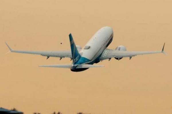 Pesawat Boeing 737 MAX lepas landas dari Boeing Field di Seattle, Washington, pada 30 September 2020. (Foto: Mike Siegel/Pool via Reuters)