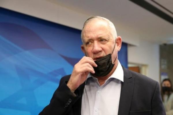 Menteri Pertahanan Israel Benny Gantz menyesuaikan maskernya saat rapat kabinet mingguan di kantor perdana menteri di Yerusalem pada 1 Agustus 2021. (Foto: Abir Sultan/Pool via Reuters)