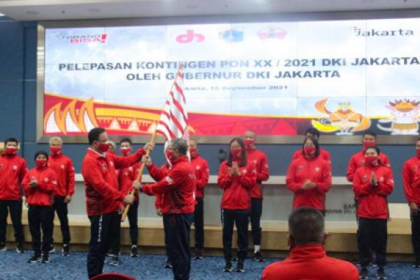 Jakarta, Jurnas.com - Gubernur Provinsi DKI Jakarta, Anies Baswedan, secara simbolis melepas keberangkatan Kontingen DKI Jakarta yang terdiri dari para atlet, pelatih, serta official menuju kompetisi Pekan Olahraga Nasional (PON) ke-20 di Papua, pada 2-15 Oktober 2021 mendatang, di Balai Kota Jakarta, Rabu (15/9).