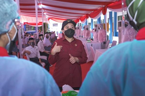Puan Maharani Ketua DPR Tinjau Vaksinasi di Sekolah Vaksinasi BIN