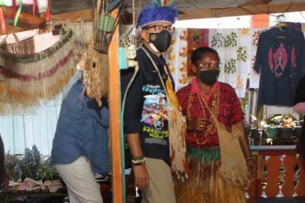 Menparekraf Sandiaga Uno saat tiba di Kampung Yoboi, Distrik Sentani, Papua. (Foto: Junrnas/Ist).