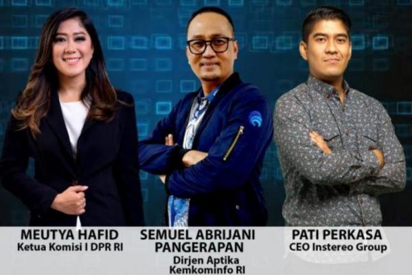 Webinar via zoom yang diselenggarakan DPR bersama Kementerian Komunikasi dan Informatika (Kominfo) diikuti 150 mahasiswa dari wilayah Sumatera Utara dan sebagian wilayah Jabodetabek, menghadirkan Ketua Komisi 1 DPR Meutya Hafid sebagai keynote speaker, Dirjen Aptika Kemenkominfo, Semuel A Pangerapan dan CEO Instereo Group, Pati Perkasa sebagai narasumber.