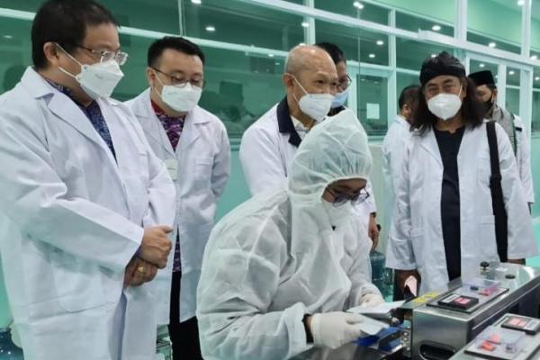 Ketua Umum Asosiasi Peneliti dan Manufaktur Alat Kesehatan Indonesia (APMAKI) Dr Tumiran (ketiga dari kiri) bersama Majelis Ulama Indonesia (MUI) saat meninjau produsen alkes dalam negeri PT Taishan Alkes Indonesia yang menerima sertifikasi halal dari MUI di Jakarta, Rabu (6/10).