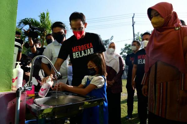 "Dari hasil kunjungan tadi, saya lihat protokol kesehatan telah diterapkan secara ketat, dan semangat anak-anak juga terlihat berbeda dari anak-anak yang lama melaksanakan pendidikan jarak jauh. Bahkan kemarin pertama kali saya melihat anak-anak melaksanakan upacara bendera," kata Nadiem usai meninjau PTM Terbatas secara hybrid melalui tatap muka dan virtual di Kabupaten Lombok Tengah, Kamis (7/10).