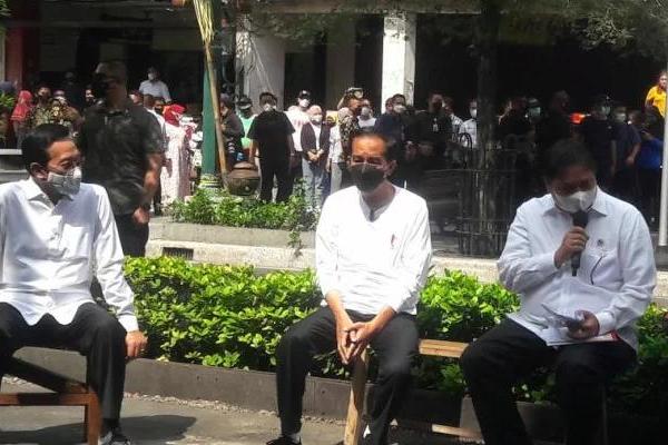 Presiden Joko Widodo kunjungi kawasan Malioboro bersama Menko Airlangga dan Gubernur DIY Sri Sultan Hameng Buewono X. (Foto: Ist)