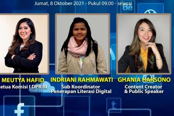 Webinar itu menghadirkan Ketua Komisi I DPR Meutya Hafid sebagai keynote speaker, sedangkan nara sumber diskusi adalah Sub Koordinator Penerapan Literasi Digital Kemenkominfo, Indriani Rahmawati, dan Content Creator, Ghania Harsono.