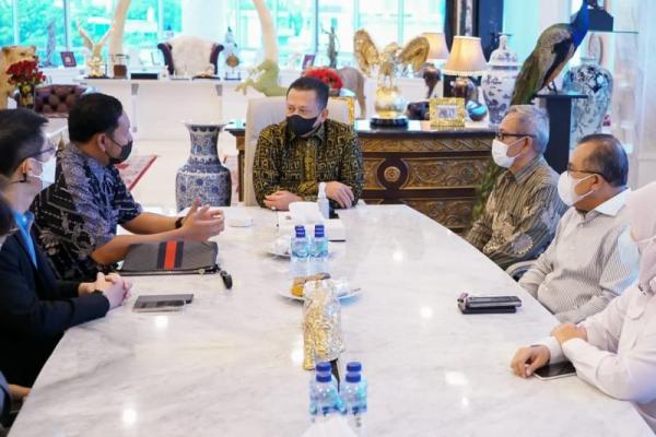 Ketua MPR, Bambang Soesatyo menerima jajaran direksi PT Power Wealth Indonesia, di Jakarta, Selasa (19/10/21). (Foto: MPR)