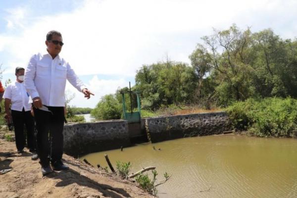 Sidoarjo, Jurnas.com - Menteri Kementerian Kelautan dan Perikanan (KKP) Sakti Wahyu Trenggono ditemani Wakil Gubernur Jawa Timur Emil Dardak meninjau Pulau Lusi (Lumpur Sidoarjo) di Dusun Tlocor, Desa Kedungpandan, Kecamatan Jabon, Kabupaten Sidoarjo, Jawa Timur (19/10/2021).