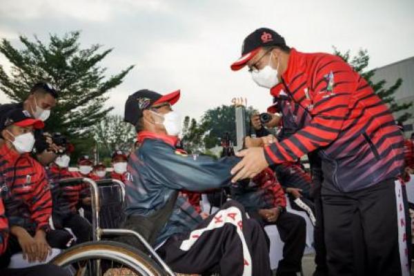 Jakarta, Jurnas.com - Gubernur Provinsi DKI Jakarta, Anies Baswedan beserta jajaranya, melepas secara simbolis keberangkatan kontingen DKI Jakarta, yang akan berlaga di Pekan Paralimpik Nasional (Peparnas) ke-16, di GOR PPOP Ragunan, Jakarta Selatan. Kontingen DKI Jakarta akan berangkat ke Papua dan mulai berkompetisi dari tanggal 2 hingga 15 November 2021.