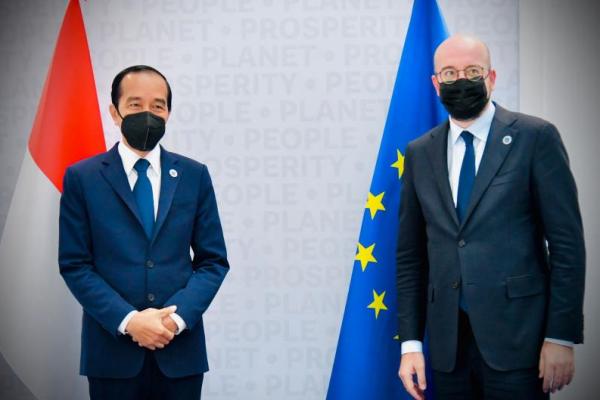 Presiden Jokowi dalam sebuah pertemuan bilateral dengan pimpinan Dewan Eropa pada KTT G20 di Roma, Italia (Foto: Biro Pers Sekretariat Presiden)