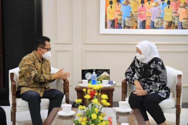 Menteri Ketenagakerjaan, Ida Fauziyah berdialog dengan Duta Besar Luar Biasa dan Berkuasa Penuh Republik Indonesia untuk Bandar Sri Begawan, Sujatmiko. (Foto: Biro Humas Kemnaker)