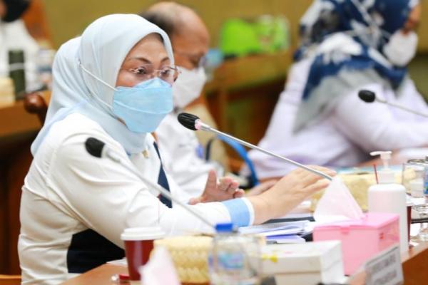 Menteri Ketenagakerjaan, Ida Fauziyah dalam raker dengan Komisi IX DPR di Komplek Parlemen Senayan, Jakarta, Senin (15/11/2021). (Foto: Biro Humas Kemnaker)