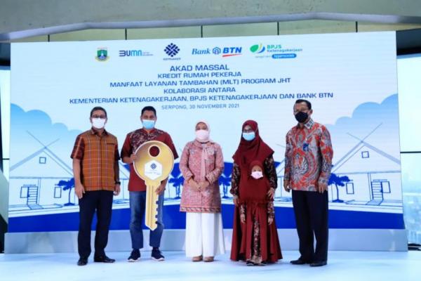 "Sebenarnya, program MLT JHT ini telah diluncurkan sejak tahun 2016 melalui Permenaker Nomor 35 Tahun 2016 tentang Tata Cara Pemberian, Persyaratan, dan Jenis Manfaat Layanan Tambahan Program Jaminan Hari Tua yang kemudian direvisi melalui Permenaker Nomor 17 Tahun 2021," kata Menteri Ketenagakerjaan Ida Fauziyah pada sambutan acara Akad Massal Kredit Rumah Pekerja Manfaat Layanan Tambahan (MLT) Program JHT, di Serpong Tangerang, Selasa (30/11/2021).