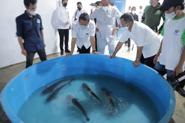 Hal ini disampaikan Menteri Kelautan dan Perikanan Sakti Wahyu Trenggono saat kembali mengunjungi Kampung Cisilad pada Rabu (8/12/2021). Menteri Trenggono yang didampingi Direktur Jenderal Perikanan Budidaya, Tb Haeru Rahayu meninjau langsung kegiatan produksi, mulai dari kegiatan di hatchery hingga penebaran benih ikan patin ke kolam.