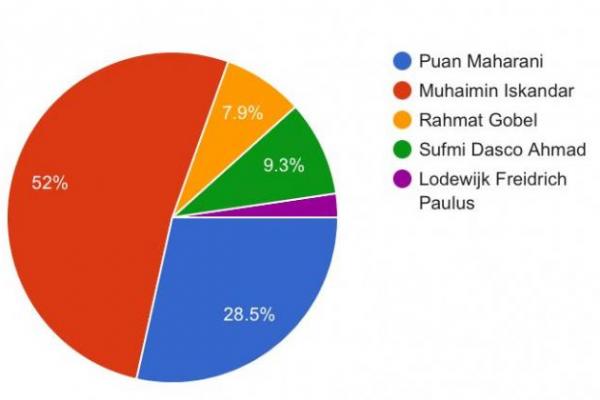 Hasil polling menunjukkan Wakil Ketua DPR RI A. Muhaimin Iskandar berada pada urutan pertama pilihan responden, dengan angka sebesar 52 persen.
