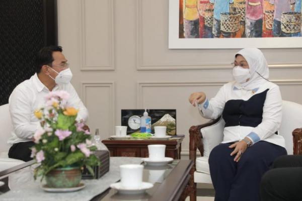 Menteri Ketenagakerjaan, Ida Fauziyah menerima kunjungan Bupati Sigi, Mohamad Irwan, di Kantor Kemnaker, Jakarta, Rabu (15/12/2021). (Foto: Biro Humas Kemnaker)