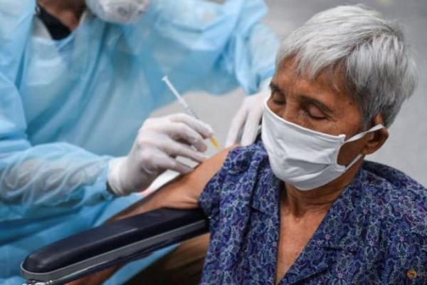 Seorang wanita mendapat suntikan vaksin COVID-19 di Pusat Vaksinasi Pusat saat Thailand membuka walk-in untuk dosis pertama skema vaksinasi AstraZeneca untuk orang tua, orang dengan berat badan minimum 100kg dan wanita hamil di tengah wabah COVID-19 di Bangkok, Thailand pada 23 Juli 2021. (Foto: Reuters/Chalinee Thirasupa)