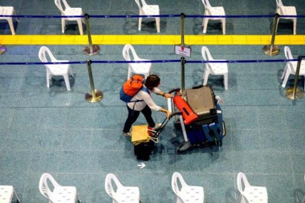 Seorang wanita berjalan melewati area kedatangan di Bandara Internasional Phuket di Thailand pada 1 November 2021. (Foto: AFP/Mladen Antonov)