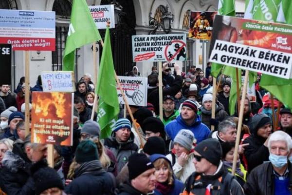 Hongaria Protes Wajib Vaksin Antivaksin COVID-19
