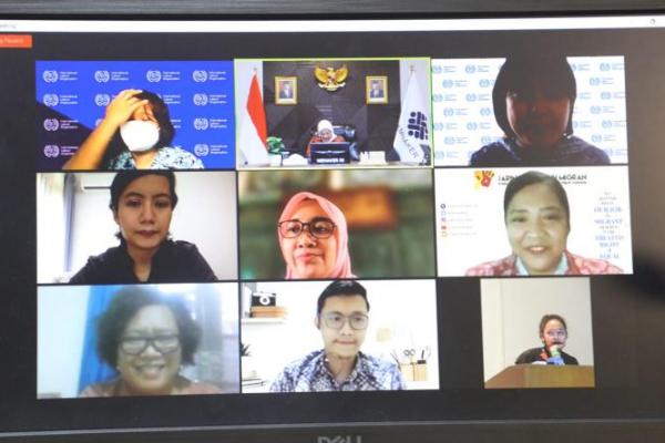 Menteri Ketenagakerjaan, Ida Fauziyah dalam pertemuan bersama dengan ILO Indonesia dan Jaringan Buruh Migran. (Foto: Biro Humas Kemnaker)