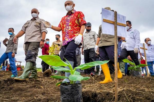 Menteri Koperasi dan UKM Teten Masduki melakukan tanam perdana pisang cavendish di Kampung Teget, Kecamatan Pintu Rime Gayo, Kabupaten Bener Meriah, Aceh. (Jurnas/Humas Kemenkop UKM)