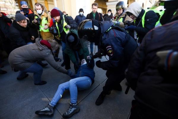 Salah seorang reporter saluran televisi independen Dozhd ditangkap selama protes, meskipun telah menunjukkan kartu pers-nya kepada polisi dan mengenakan rompi pers.