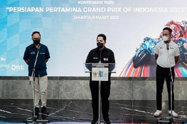 Penjelasan itu disampaikan Menteri Badan Usaha Milik Negara (BUMN) Erick Thohir, dalam konferensi pers perkembangan persiapan MotoGP 2022 Seri Pertamina Grand Prix of Indonesia di Jakarta, Minggu.