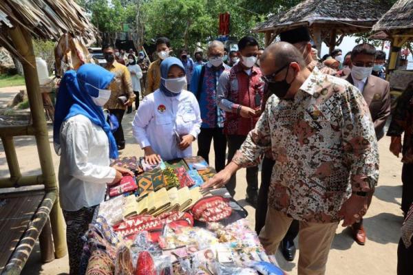 Ketua DPD AA LaNyalla Mahmud Mattalitti saat mendatangi pameran produk UMKM di perhelatan launching Program Desa Emas, di Pantai Mutun Kabupaten Pesawaran, Lampung, 4 September 2021 lalu. (Foto: Humas DPD RI)