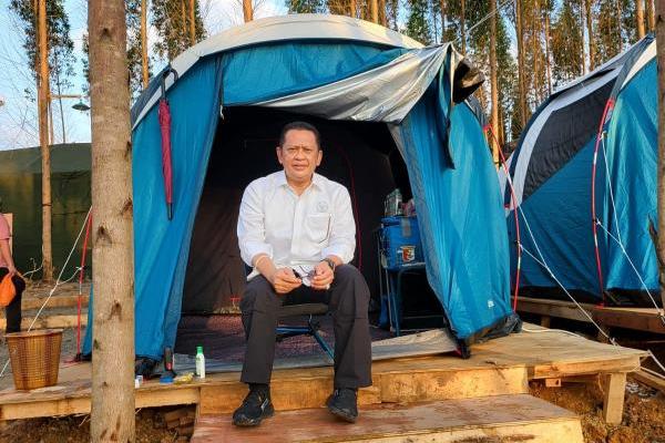 Ketua MPR, Bambang Soesatyo saat berkemah di Titik Nol IKN Nusantara di Sepaku, Penajam Paser Utara, Kalimantan Timur, Senin malam (14/3/22). (Foto: Humas MPR)
