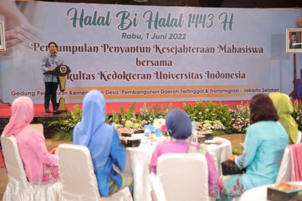 Menteri Desa, Pembangunan Daerah Tertinggal dan Transmigrasi, Abdul Halim Iskandar menghadiri acara Halal Bihalal antara orang tua mahasiswa, jajaran Dekanan dan Staf Pengajar serta Mahasiswa Fakultas Kedokteran Universitas Indonesia (FKUI) di Gedung Makarti Muktitama, Kemendes PDTT pada Rabu (1/6/2022). (Foto: Humas Kemendes PDTT)