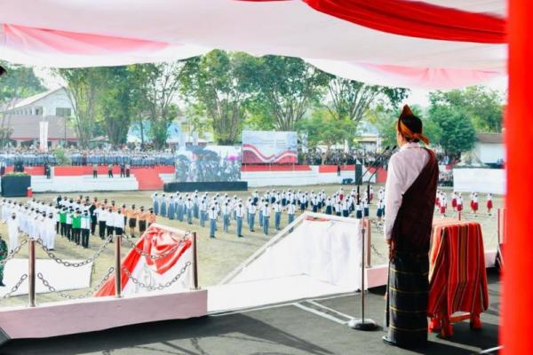 Presiden Joko Widodo menjadi inspektur umacara dalam Peringatan Hari Lahir Pancasila di lapangan Pancasila, Ende, Nusa Tenggara Timur (NTT). (Foto: kemenpora.go.id)