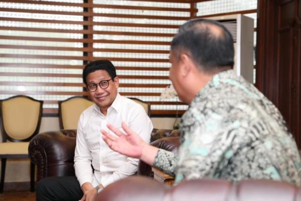 Menteri Desa, Pembangunan Daerah Tertinggal dan Transmigrasi, Abdul Halim Iskandar menerima audiensi Cik Ujang Bupati Lahat Provinsi Sumatera Selatan bersama jajaran Kepala Dinas di ruang kerjanya. Kamis (9/6/2022). (Foto: Humas Kemendes PDTT)