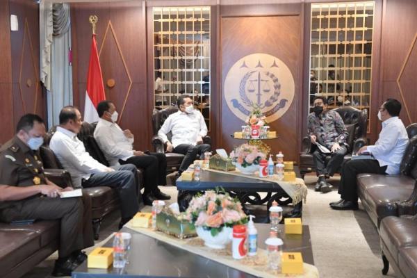 Menteri Desa, Pembangunan Daerah Tertinggal dan Transmigrasi, Abdul Halim Iskandar kunjungi Kepala Kejaksaan Agung (Kajagung) ST Burhanuddin di ruang VVIP di Gedung Kartika Kejaksaan Agung, pada Selasa (14/6/2022). (Foto: Humas Kemendes PDTT)