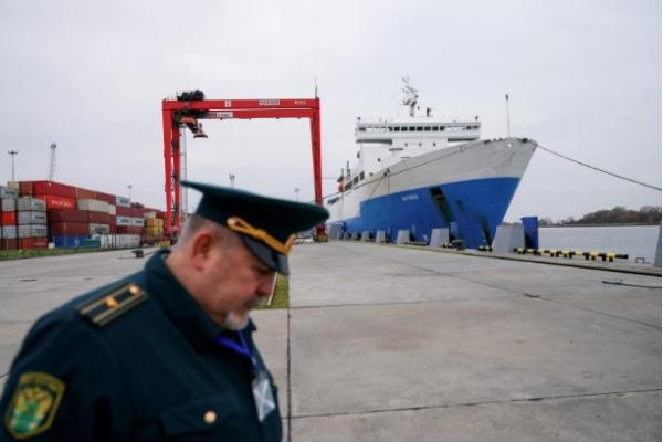Seorang petugas bea cukai Rusia bekerja di pelabuhan komersial di Baltiysk, wilayah Kaliningrad, Rusia (File: Vitaly Nevar/Reuters)