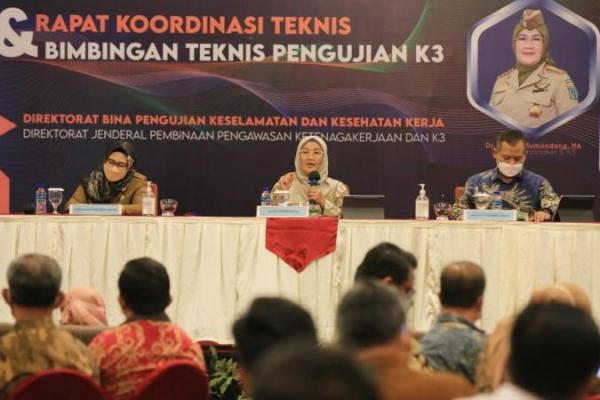 Hal tersebut disampaikan Dirjen Binwasnaker dan K3 Kemnaker, Haiyani Rumondang, saat membuka Rapat Koordinasi Teknis dan Bimbingan Teknis Pengujian K3 di Balikpapan, Selasa (21/6/2022).