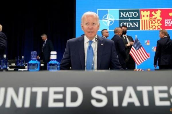 Presiden AS Joe Biden menunggu dimulainya pertemuan meja bundar pada KTT NATO di Madrid, Spanyol, pada 29 Juni 2022. (Foto: Susan Walsh/Pool via Reuters)