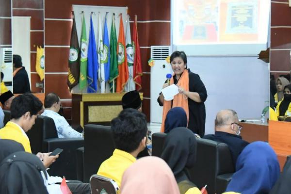 Wakil Ketua MPR, Lestari Moerdijat memberikan Kuliah Umum dan Sosialisasi Empat Pilar Kehidupan Berbangsa dan Bernegara di Aula Nuku, Universitas Khairun, Ternate, Maluku Utara, Rabu siang (29/6). (Foto: Humas MPR)