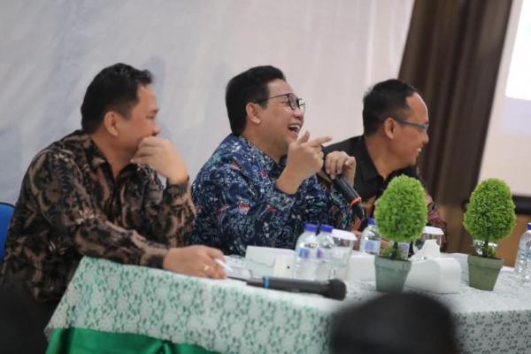 Menteri Desa, Pembangunan Daerah Tertinggal dan Transmigrasi, Abdul Halim Iskandar berdiskusi dengan Asosiasi Kepala Desa (AKD) Jawa Timur di Student Center Universitas Negeri Surabaya (UNESA), Rabu (13/7/2022) petang. (Foto: Humas Kemendes PDTT)