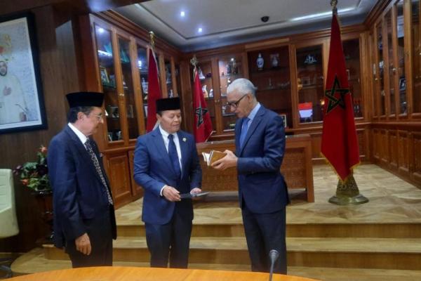 Maroko, Jurnas.com - Pimpinan MPR Hidayat Nur Wahid, dan Fadel Muhammad Al-Haddar bertemu dengan Mr. Rachid Talbi El Alami selaku Ketua Majlis Al-Nuwwab (setingkat DPR di Kerajaan Maroko). Setelah itu, kedua pimpinan MPR, itu melanjutkan pertemuan dengan Mr. Mohamed Hanine selaku Wakil Ketua Majlis Al-Mustasyarin (setingkat MPR di Kerajaan Maroko). Pertemuan tersebut berlangsung di Gedung Parlemen Maroko, Senin (18/7/2022) waktu setempat.