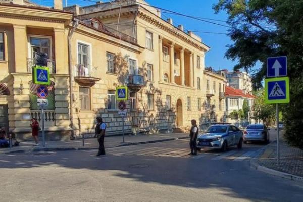 Aparat penegak hukum memblokir jalan menyusul laporan serangan drone tempur di markas Armada Laut Hitam Rusia di Sevastopol, Krimea, pada 31 Juli 2022. (Foto: Reuters/Stringer)