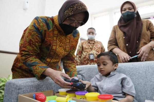 Kemudian menyerahkan bantuan mainan anak dari Kementerian Sosial. Bantuan diserahkan langsung Mensos Risma bersama perwakilan dari kitabisa.com di Sentra Terpadu Pangudi Luhur Bekasi, Selasa (20/9).