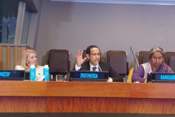 Mendikbudristek Nadiem Anwar Makarim berbagi praktik baik pendidikan Indonesia di PBB (Foto: Ist)