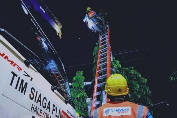 Petugas PLN sedang memperbaiki jaringan listrik. (Foto: Ist)