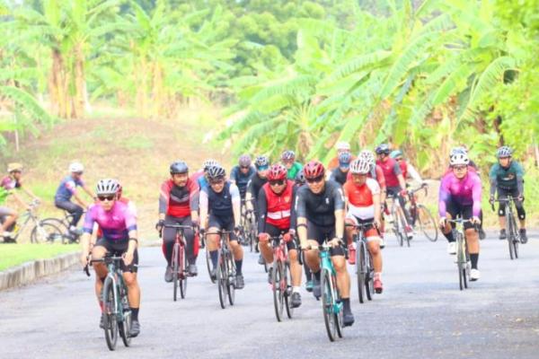 Sekjen PDIP Hasto Kristiyanto bersama sejumlah kepala daerah saat Gowes di Surabaya, Jawa Timur.