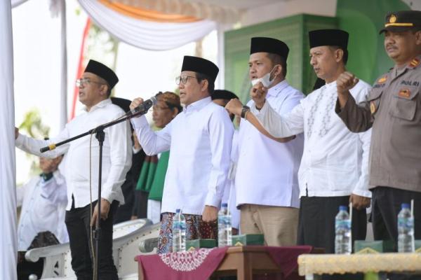 Menteri Desa, Pembangunan Daerah Tertinggal dan Transmigrasi, Abdul Halim Iskandar menghadiri upacara Hari Santri Nasional (HSN) dan Parade Budaya Nusantara di Ponpes Ibnu Umar, Pacitan Jawa Timur. (Foto: Humas Kemendes PDTT)