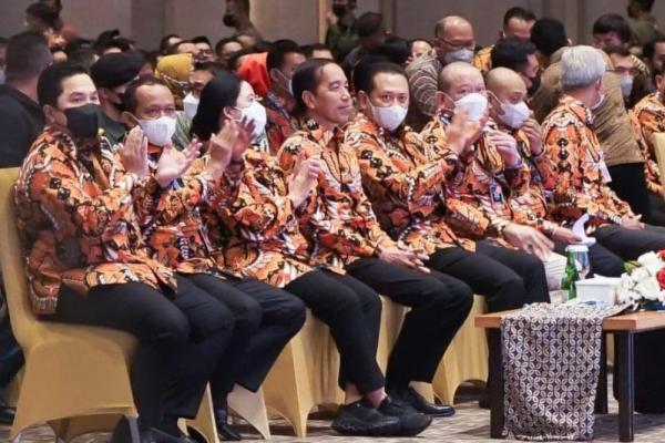 Surakarta, Jurnas.com - Ketua MPR Bambang Soesatyo (Bamsoet) bersama Ketua DPR RI Puan Maharani dan Ketua DPD RI La Nyala Mattalitti turut hadir mendampingi Presiden Joko Widodo membuka Musyawarah Nasional Himpunan Pengusaha Muda Indonesia (Munas HIPMI) XVII, di Surakarta, Senin (21/11/22). Dihadiri sekitar 4 ribu pengusaha muda dari berbagai penjuru nusantara.