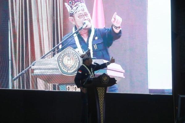 "Hari ini, besok dan ke depan tugas pak rektor memang tidak sedikit dan harus dimulai dengan perubahan agenda intelektual. Anak-anaku yang masih muda, menjadi petani itu bukan menjadi orang miskin, tetapi menjadi petani itu menjadikan dunia tidak miskin dan mahasiswa harus jauh lebih hebat dari petani biasa," katanya.